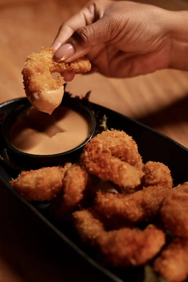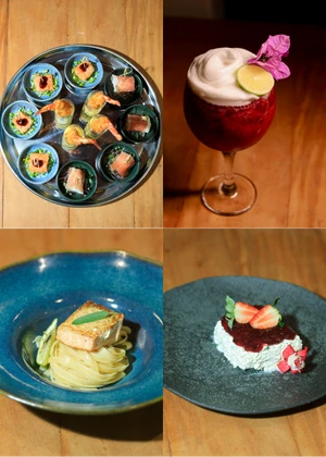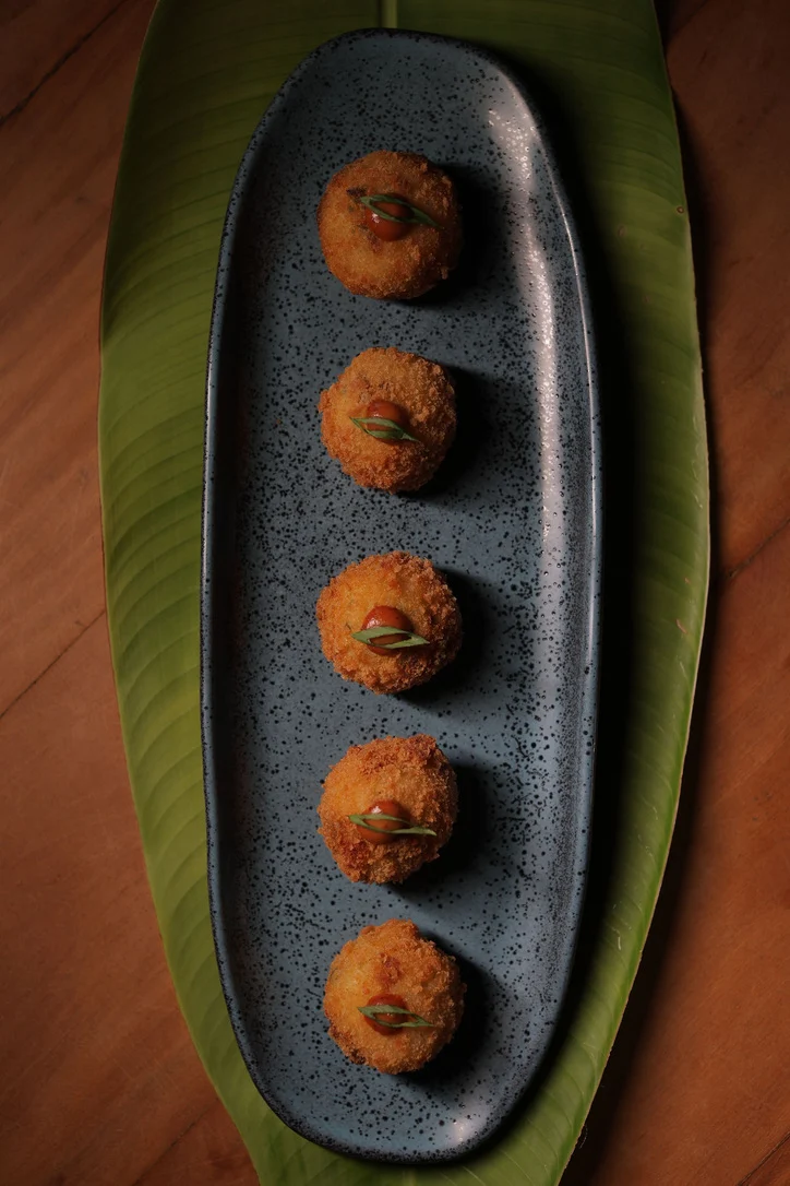 a 2 colheradas, como mini risoto de moqueca, mini moqueca, entre outros;
