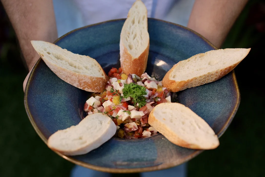 Antepastos, patês, tábua de queijo, frios e embutidos, tortas, pães de fermentação natural, saladas, entre outros;